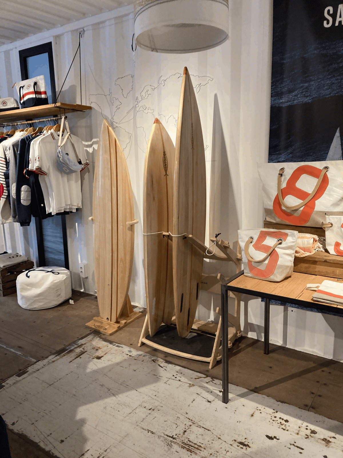 À la croisée du design marin et de l'artisanat français, le concept store de Lorient se situe dans un lieu emblématique : La Base des sous-marins. Installée au cœur de cet ancien site militaire réhabilité, la boutique 727 Sailbags incarne l'âme de l'océan Atlantique et l'engagement pour une mode durable. Elle propose une sélection complète de sacs en voile de bateau recyclée (cabas, sacs de voyage, sacs à dos), des accessoires uniques ainsi qu'une collection de vêtements marins North Sails. Et depuis peu, on y trouve aussi des surfs CENT53 nautic Le concept store 727 Sailbags & North Sails se trouve à Lorient, au 3 Rue d'Estienne d'Orves dans le quartier historique de La Base.